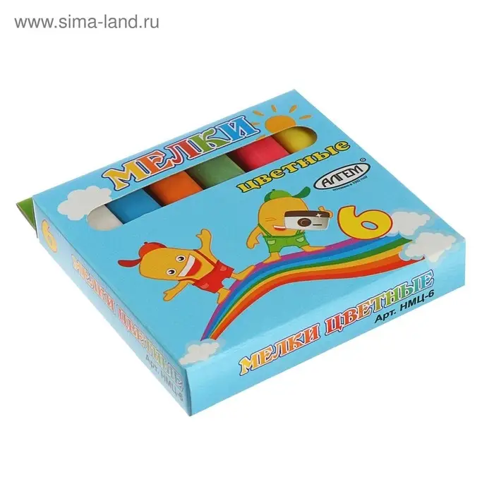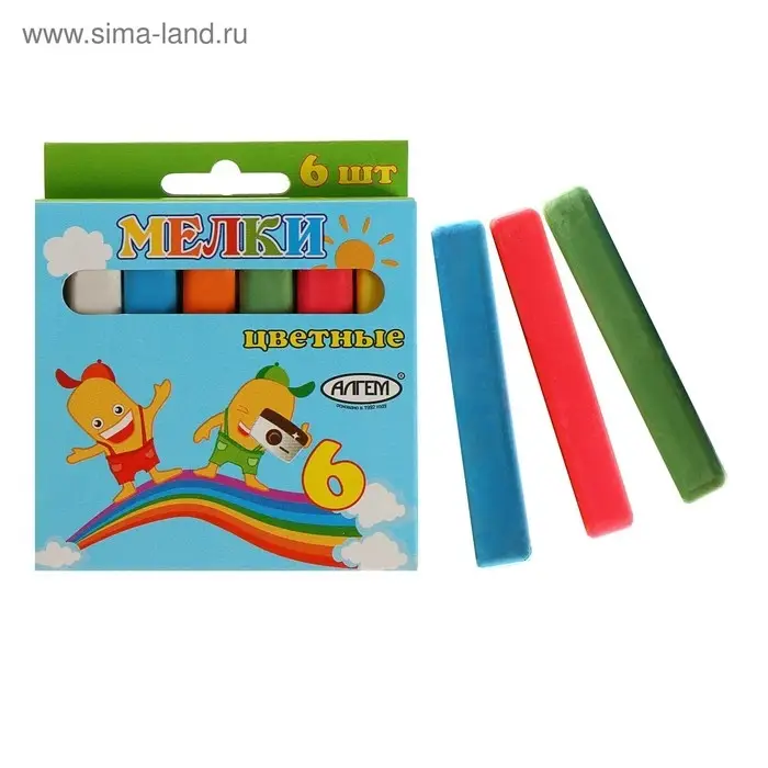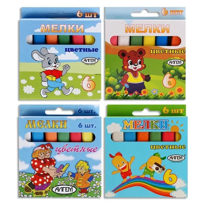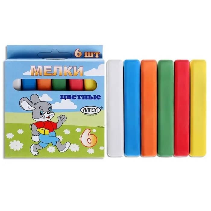 Мелки цветные "АЛГЕМ", в наборе 6 штук, квадратные