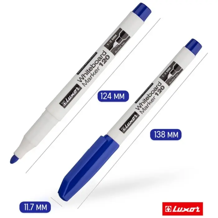 Маркер для доски Luxor 120 предназначен для надписей на досках с магнитно-маркерной и на других непористых поверхностях: стекло, фарфор, пленка.