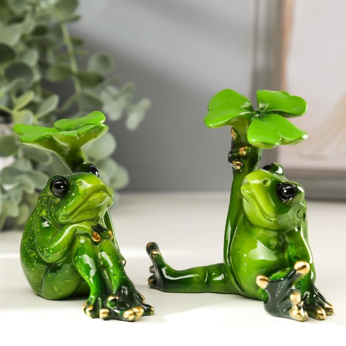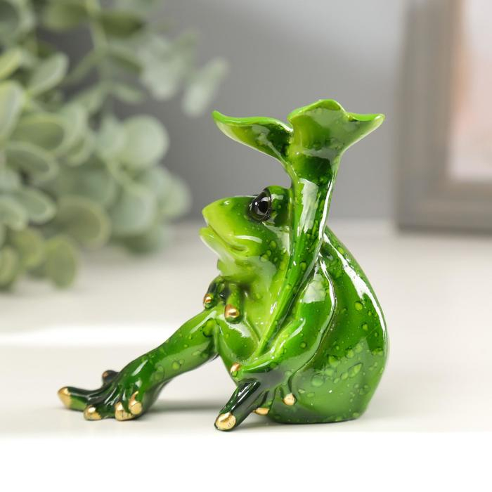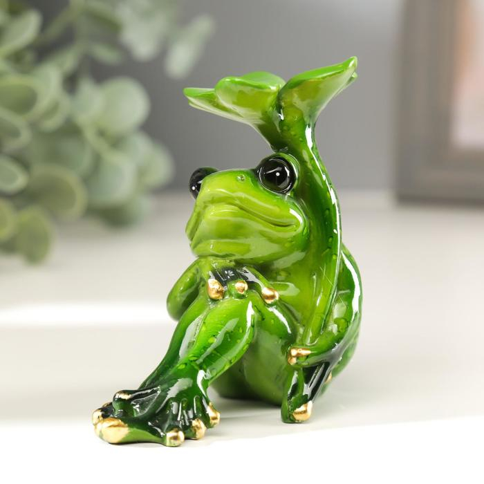 Сувенир полистоун "Лягушка с листочком" МИКС 10х6х11 см