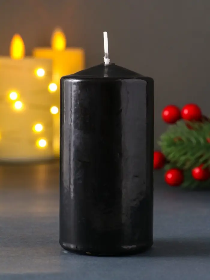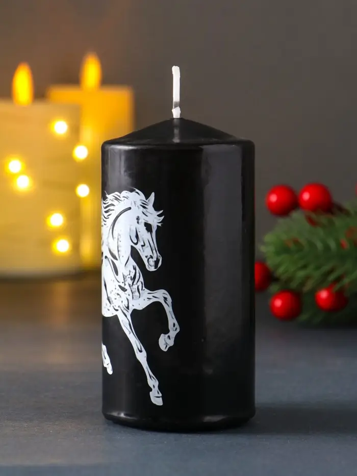 Свеча столб 50*100 мм с накаткой "Символ года" , Конь, черная