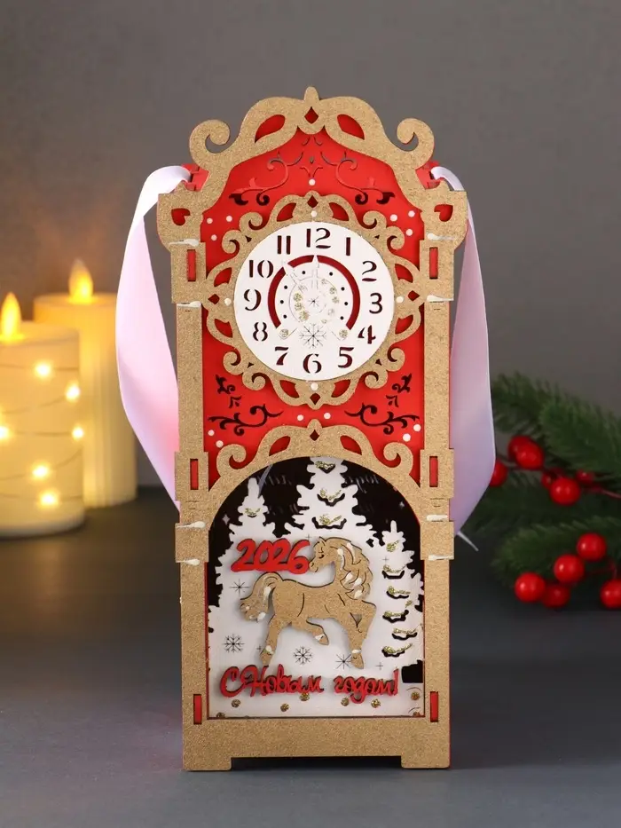 Шкатулка "Лошадка 2026" с сувениром, 12х10х27, красный