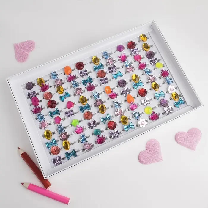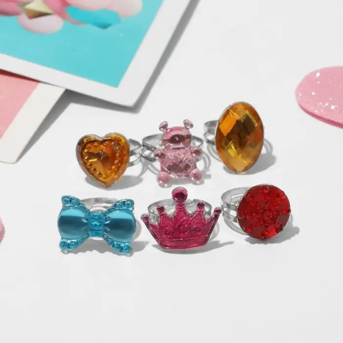 Кольцо детское «Выбражулька» ассорти для девочек, форма МИКС, цвет МИКС, безразмерное