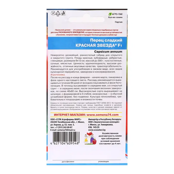 Семена Перец сладкий "Красная звезда" F1, 20 шт