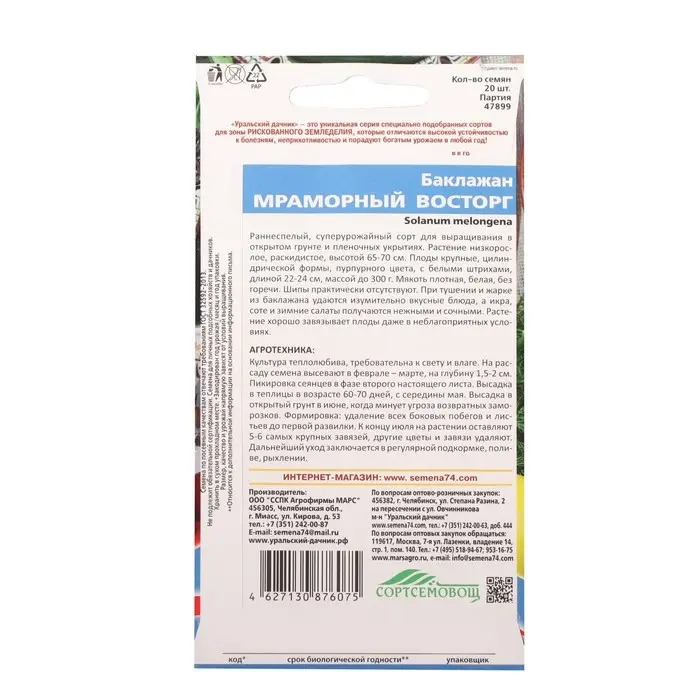 Семена Баклажан "Мраморный Восторг", 20 шт.