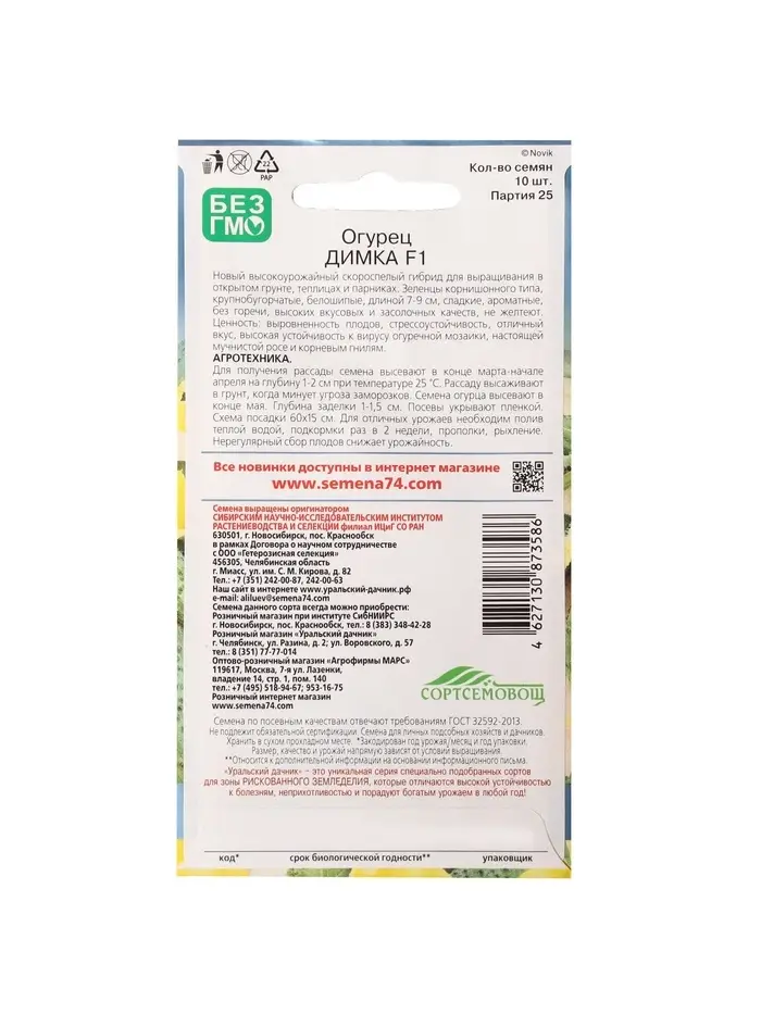 Семена огурца "Димка", F1, 10 шт.