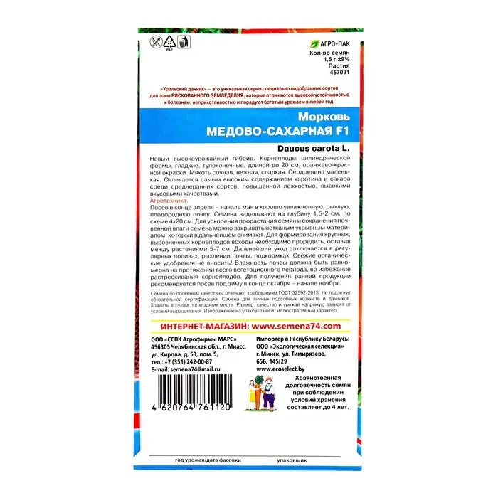 Семена Морковь "Медово-сахарная", F1, 1,5 г