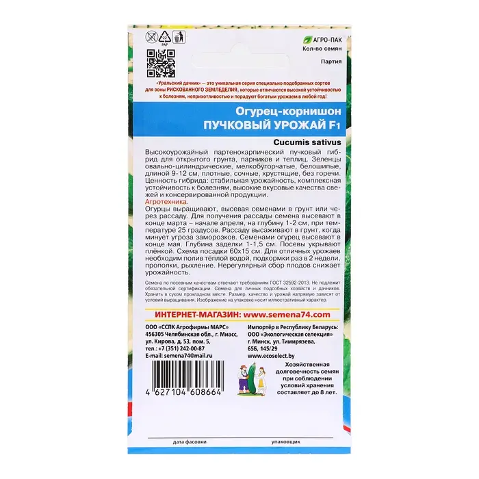 Семена Огурец "Лилипут", F1, пикуль, серия 1+1, 20 шт