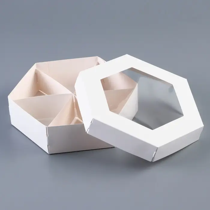 Менажница изготовлена из прочного и безопасного для пищевых продуктов картона, что делает её легкой, но при этом устойчивой к деформации. Экологичный материал легко перерабатывается, что является отличным выбором для тех, кто заботится об окружающей среде.