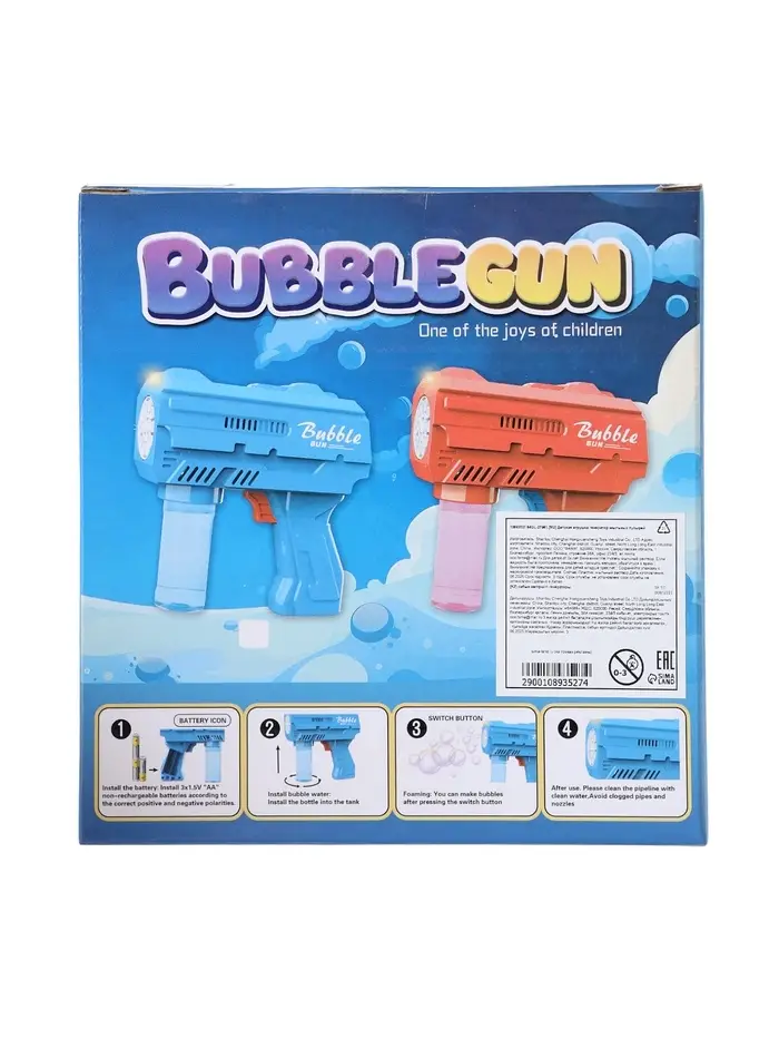 Генератор мыльных пузырей «Пистолет», световые эффекты, работает от батареек, красный