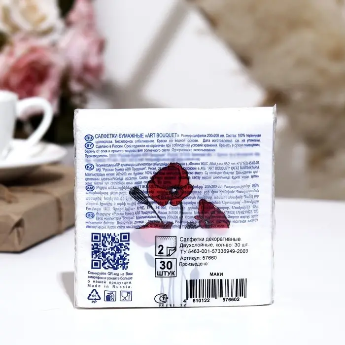 Салфетки бумажные Art Bouquet «Маки», 20 x 20, 2 слоя