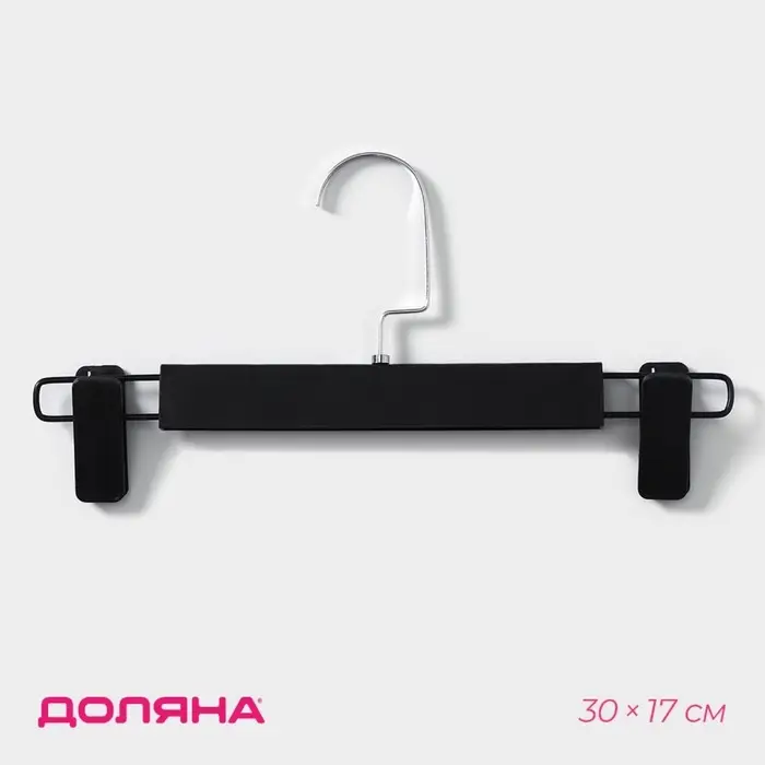 Вешалка для брюк и юбок с зажимами Доляна, 30×17 см, цвет чёрный