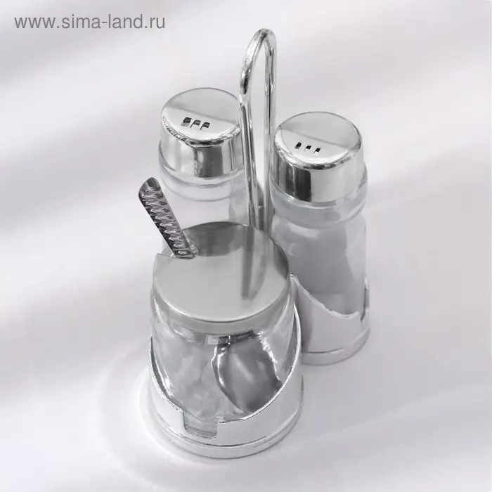 Набор для специй «Стиль», 3 шт: сахарница с ложкой 80 мл, солонка и перечница 50 мл, подставка-салфетница