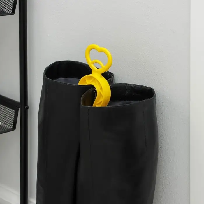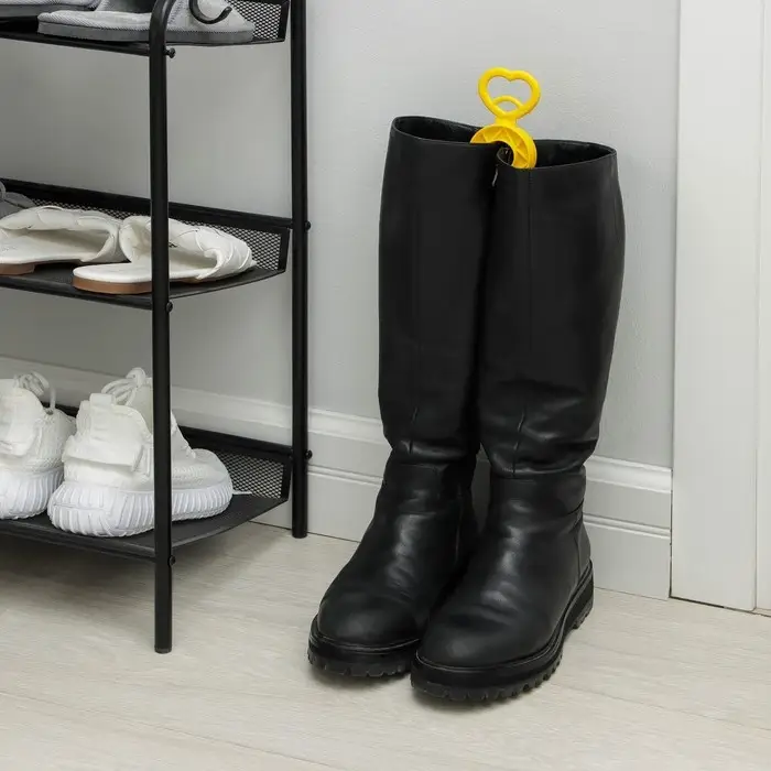 - Предохраните обувь от деформации. Жёсткий держатель не даст голенищам храниться в сложенном виде, а значит, можно попрощаться с заломами и изгибами.