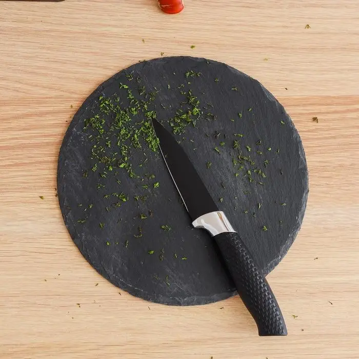 Нож из нержавеющей стали с ручкой из практичного пластика — необходимый помощник для повара. Предмет прослужит долгие годы и сделает готовку быстрой и приятной.