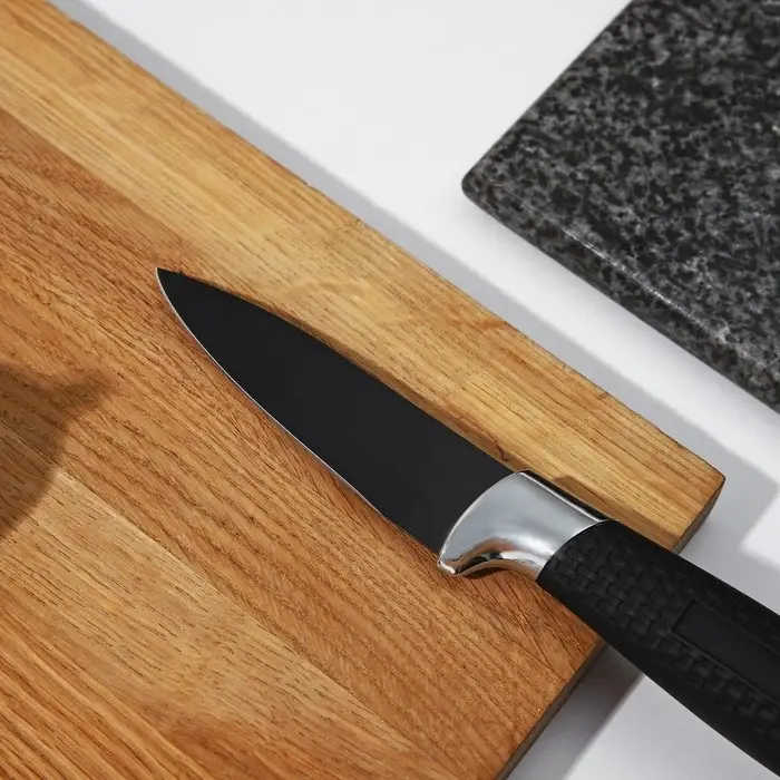 Нож кухонный с антиналипающим покрытием Доляна «Супер-блэк», лезвие 8.5 см, чёрный