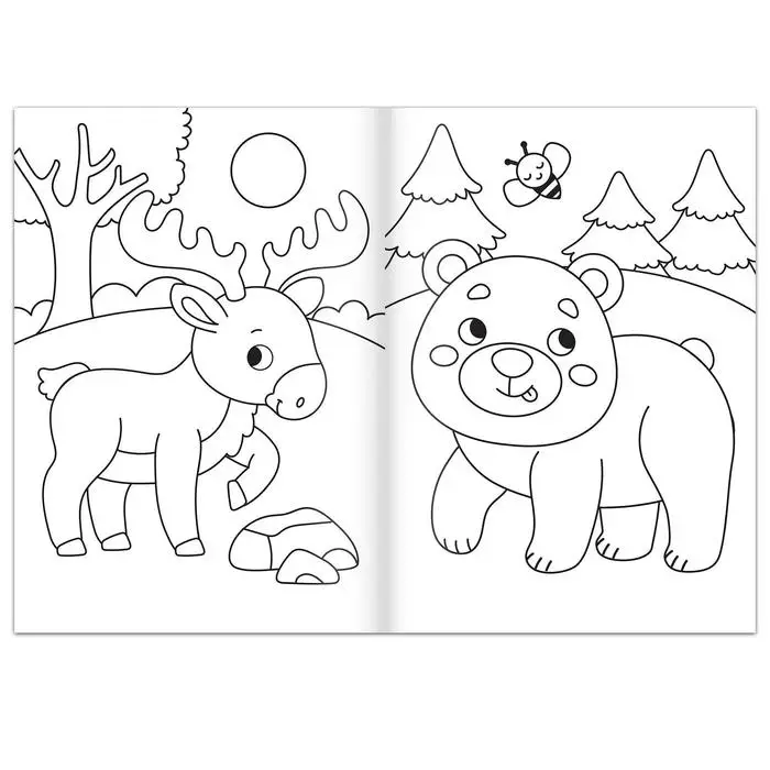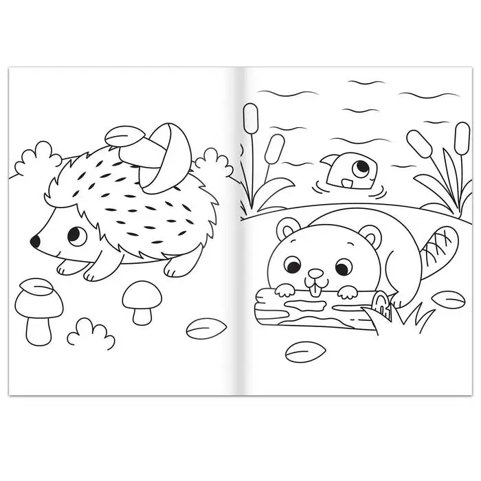 Раскраска познакомит малыша с милыми ёжиками, медвежатами и другими обитателями леса.