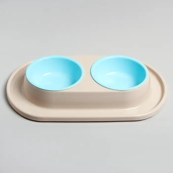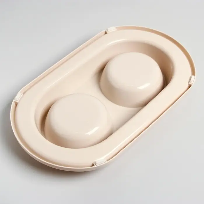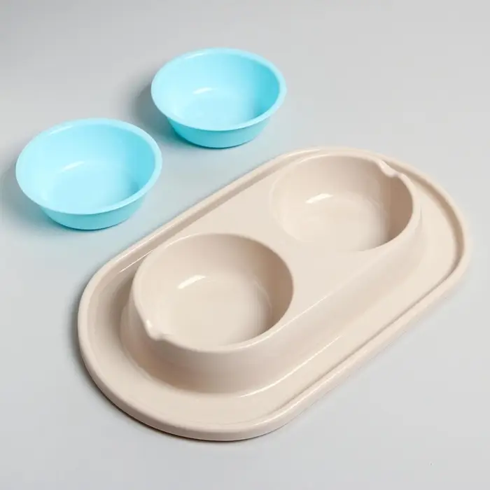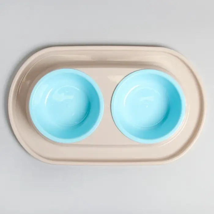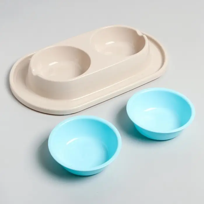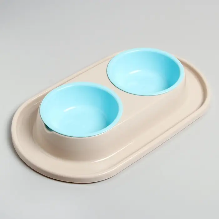 Для удобства в использовании двойная миска на подставке, предназначенная для кормления животных, содержит несколько частей: две съёмные ёмкости и основание с выемками. Также съемные ёмкости имеют шарообразную форму, поэтому частички еды не будут скапливаться в уголках как в обычных тарелках, и Ваш питомец будет съедать всё до последней крошки. Конструкция дна ёмкостей позволяет обеспечивать удобный угол наклона для приема пищи, а противоскользящие ножки делают изделие устойчивым при использовании. Обе чаши можно с легкостью мыть по отдельности. Всё изделие выполнено из высококачественного пищевого пластика, который совершенно безопасен для животных. Такая миска не только понравится вашему питомцу, но и отлично впишется в интерьер дома.