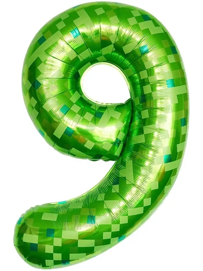 Воздушный шар фольгированный 40" цифра "9" пиксели, в ин.уп.