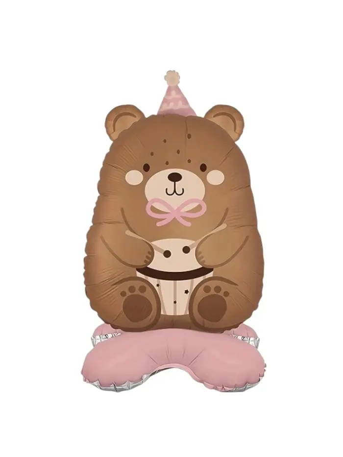 Воздушный шар фольгированный 3D 24" "Мишка в розовом колпачке" под воздух