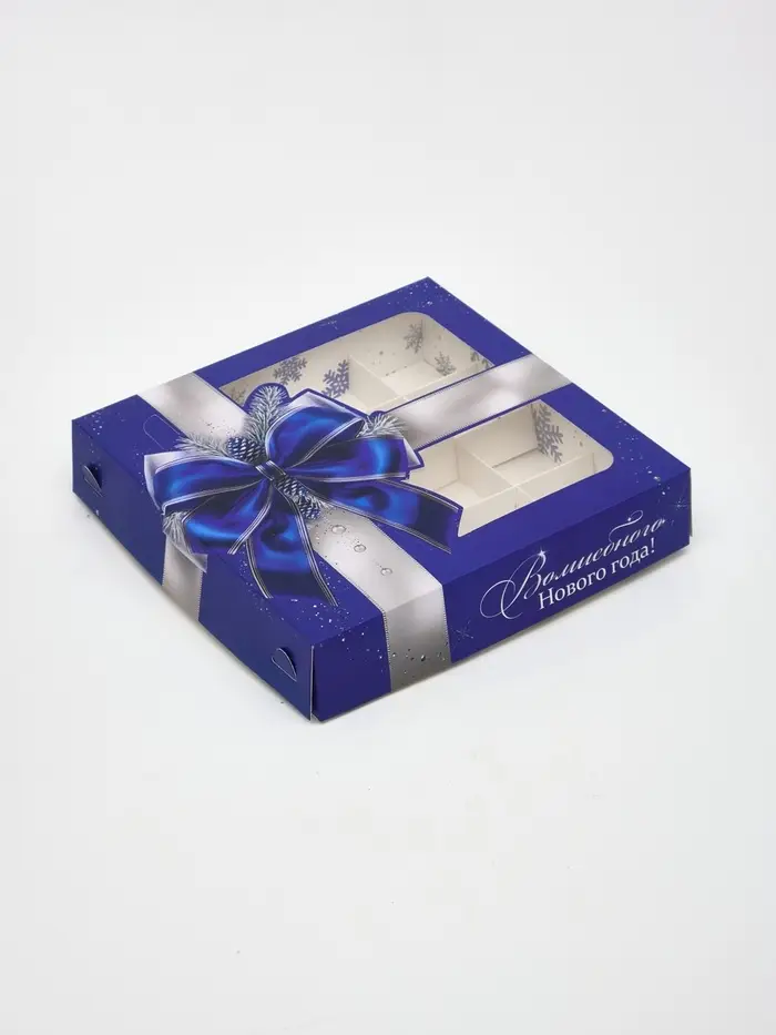 Коробка для конфет «Бант новогодний», 18.9×18.9×3.8 см