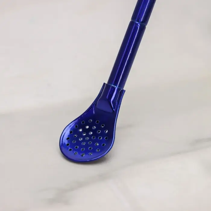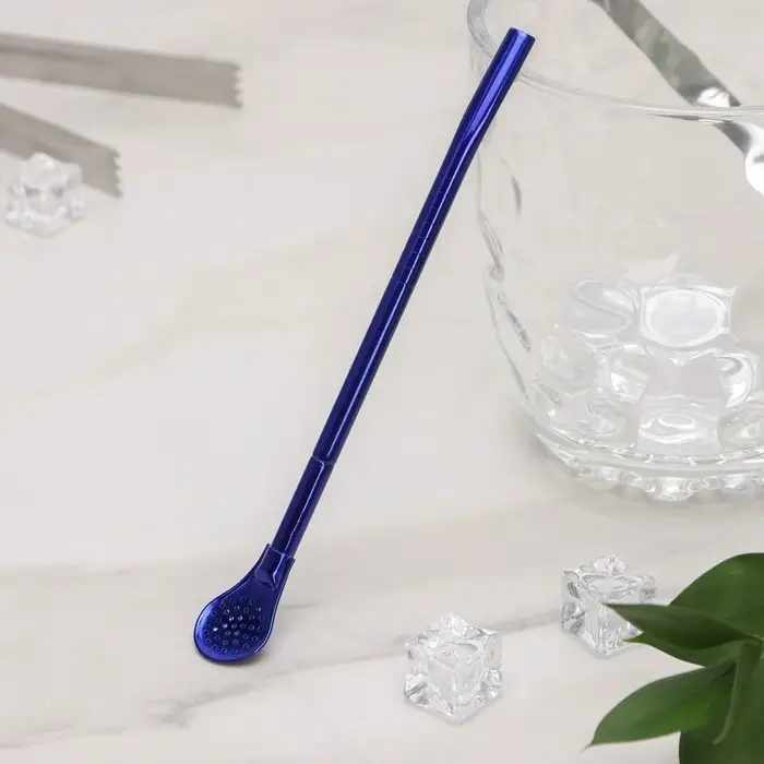 Ложка-бомбилья из нержавеющей стали для матэ, длина 17,5 см, цвет синий