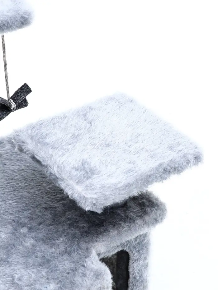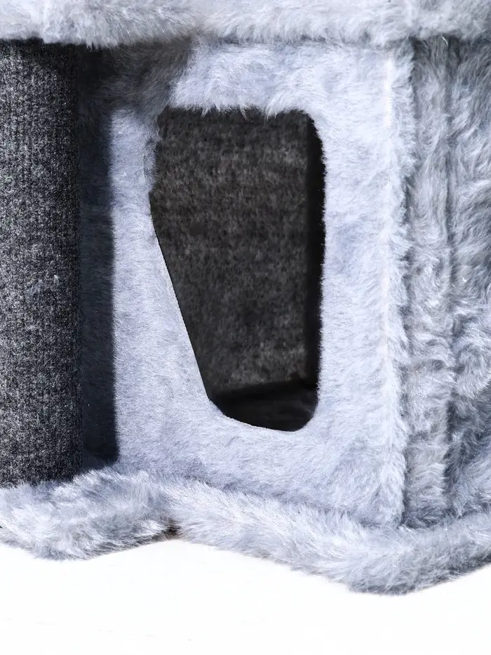 - Многофункциональная конструкция: Нижний домик с мягкими стенками, две просторные полки и вертикальная когтеточка — все необходимое питомцу в одном комплексе.