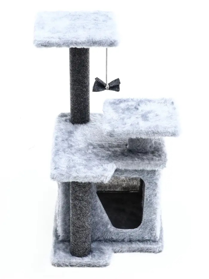 Домик для кошек с когтеточкой, квадратный, 3х-этажный, 33 × 42 × 63 см, ковролин, серая
