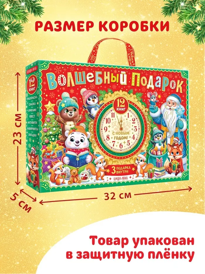 Подарок на Новый год для детей «Волшебный подарок», большой новогодний подарочный набор книг 12 шт.