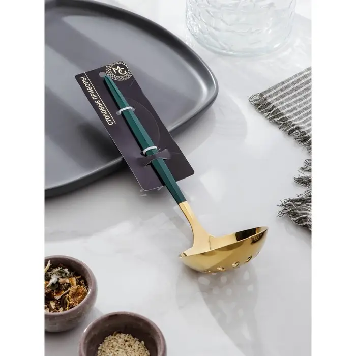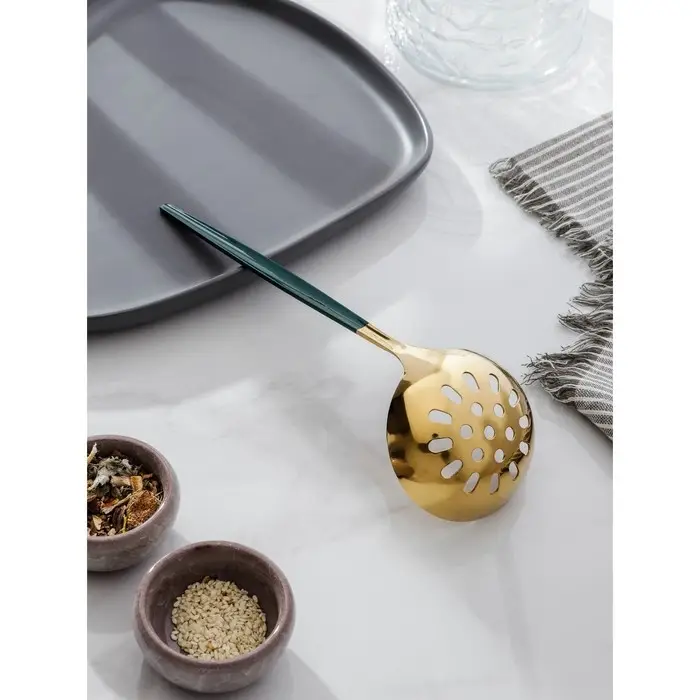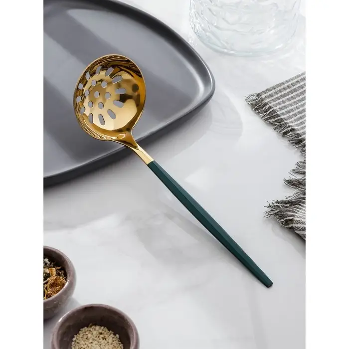 Шумовка из нержавеющей стали Magistro «Грэйс», h=24,5 см, цвет ручки зелёный, цвет головы золотой