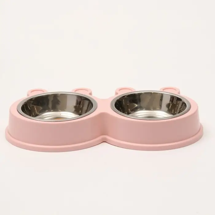 Миска металлическая двойная на пластиковой основе, 27,8 х 15,5 х 4 см, розовая