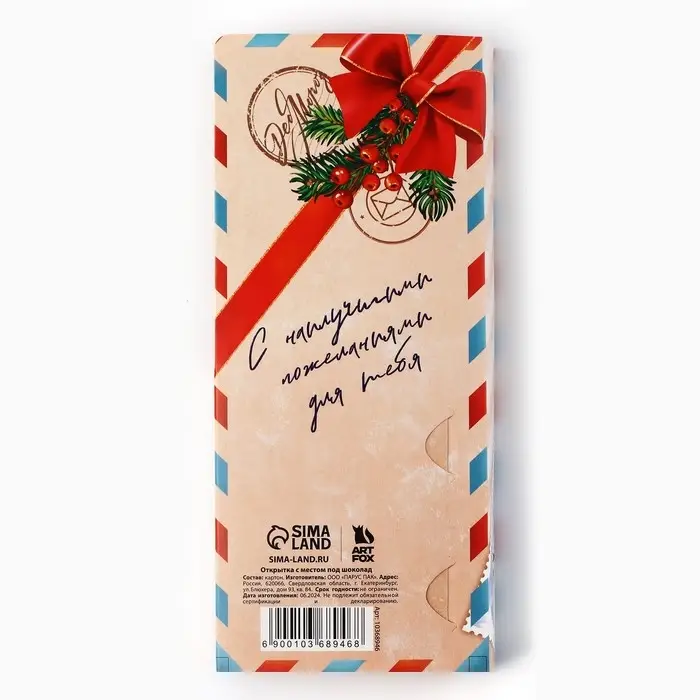 Открытка с местом для шоколадки «Новый год: Полярная почта. Доставка чудес»