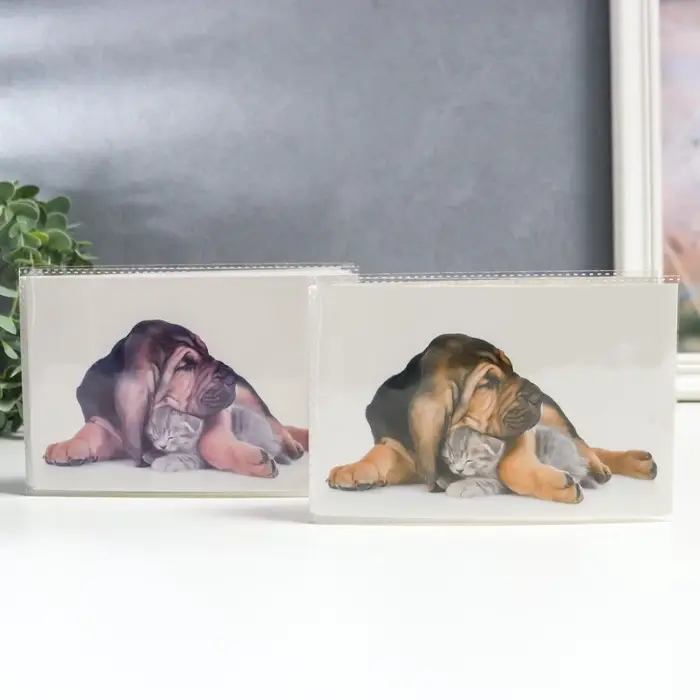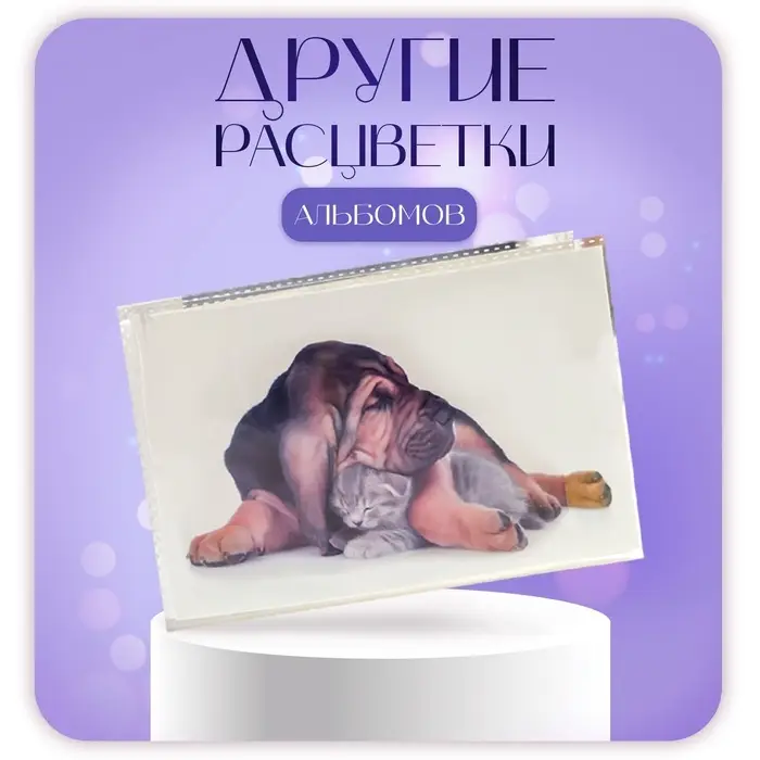 Этот трогательный фотоальбом создан для тех, кто ценит теплые моменты с домашними любимцами. С изображением забавного дуэта пса и котёнка на обложке, он станет идеальным хранилищем для 36 фотографий стандартного формата 10×15 см.