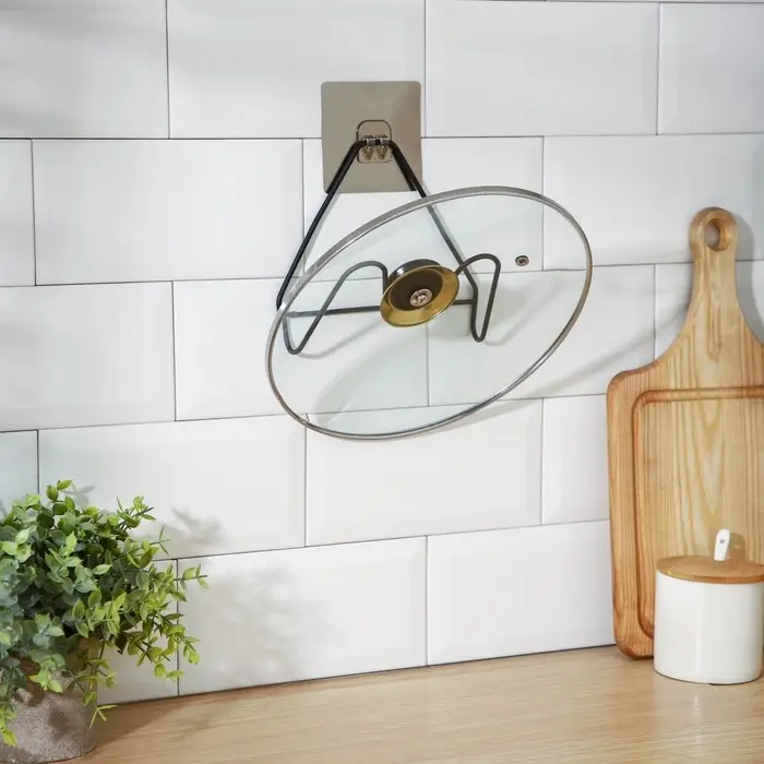 Держатель для крышек и разделочных досок Доляна, 16×8×14,6 см, на липучке, цвет чёрный