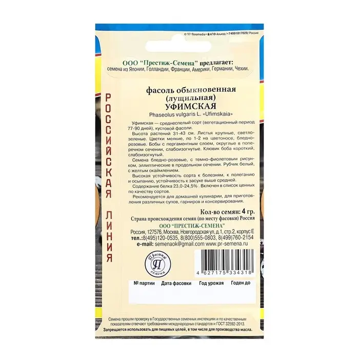 Семена Фасоль "Уфимская" обыкновенная, ц/п, 4 г