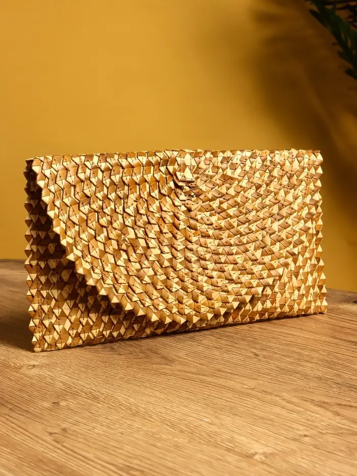 Сумка клатч плетёная из пальмового листа, 28×16×2 см, золотистая