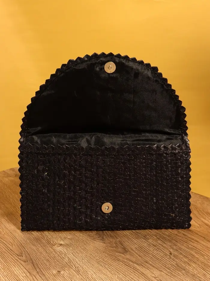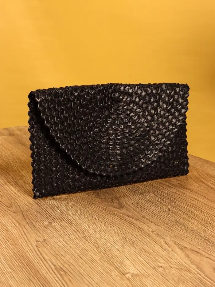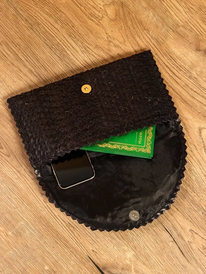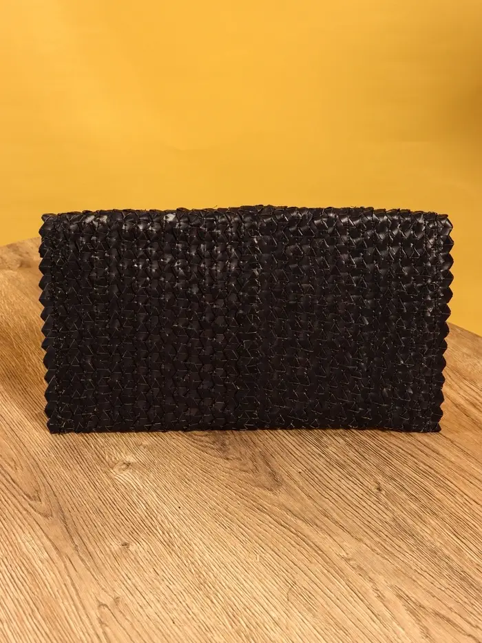 Сумка клатч плетёная из пальмового листа, 28×16×2 см, чёрная
