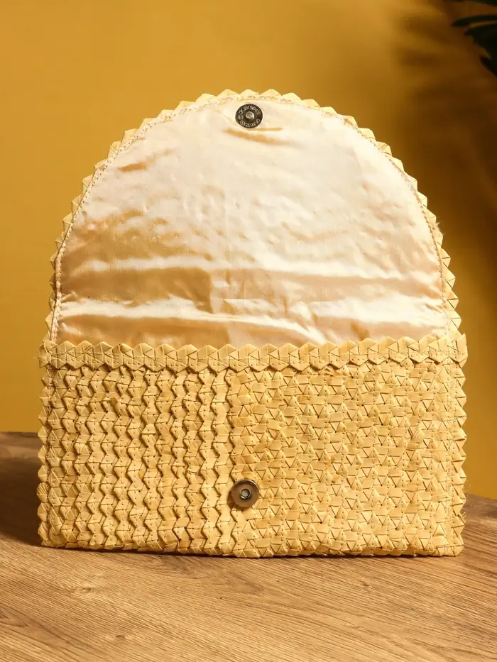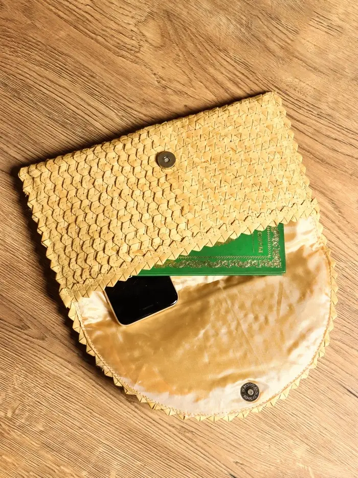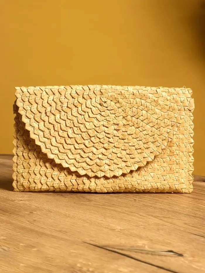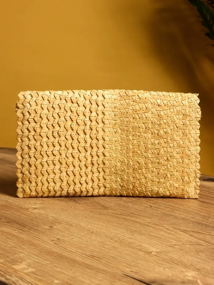 Сумка клатч плетёная из пальмового листа, 28×16×2 см, бежевая