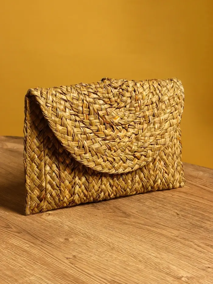 Сумка клатч плетёная из сиграсса 26х16х3 см, цв. бежевый