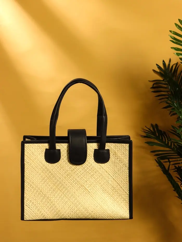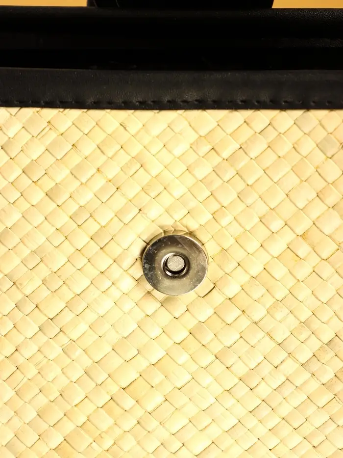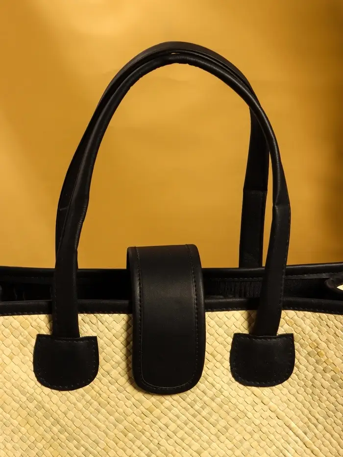 Сумка плетёная на застёжке из пандана 35х12х40 см, бежево-чёрный
