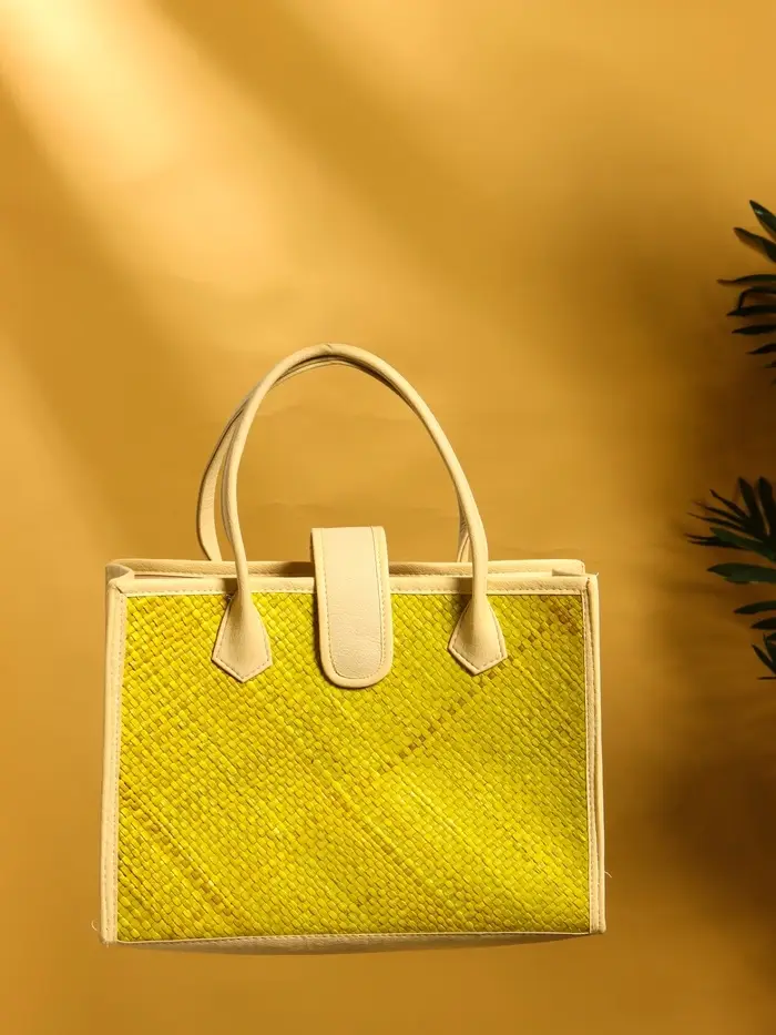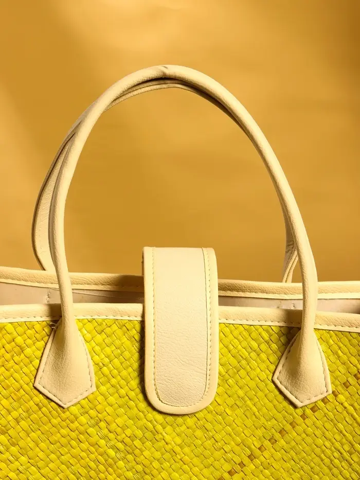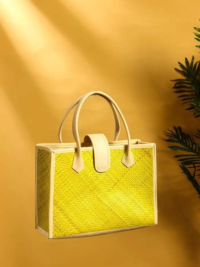 Сумка плетёная на застёжке из пандана, 35×12×40 см, жёлтая