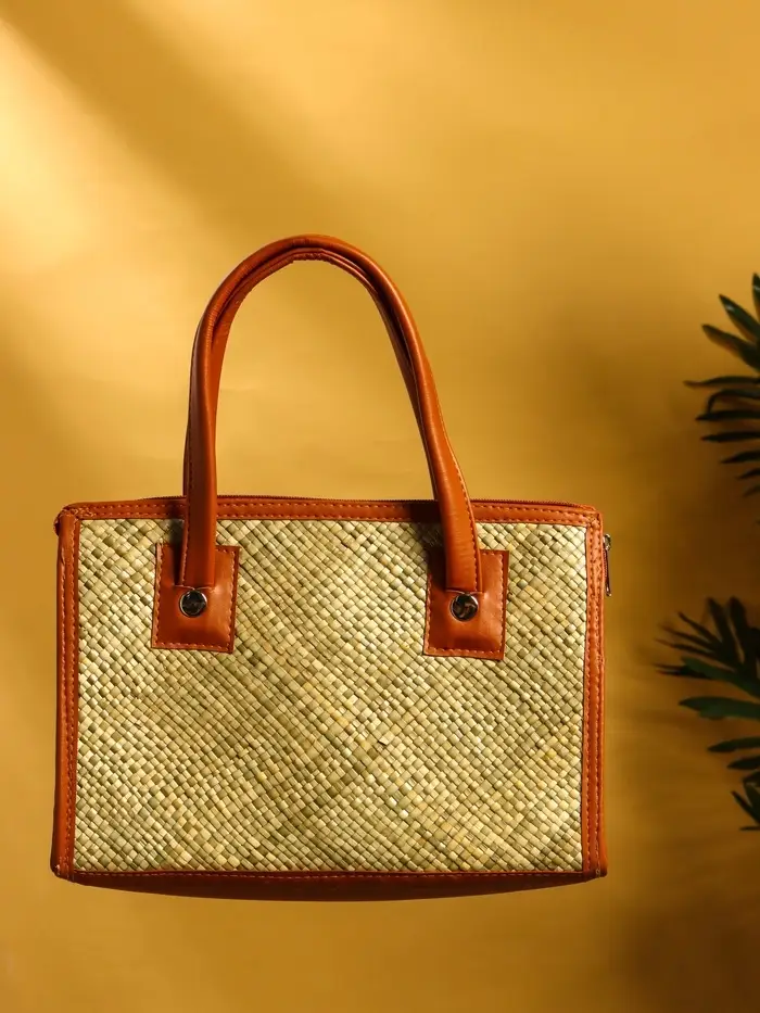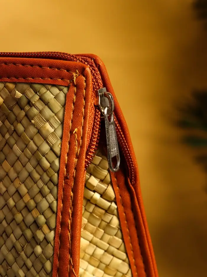 Сумка плетёная на молнии из пандана 30х10х35 см, светло-коричневый