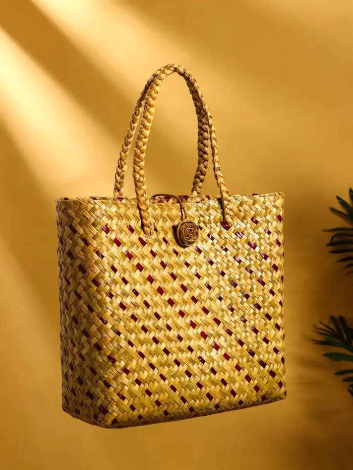 Сумка плетёная из пандана и водного гиацинта 38х14х40 см