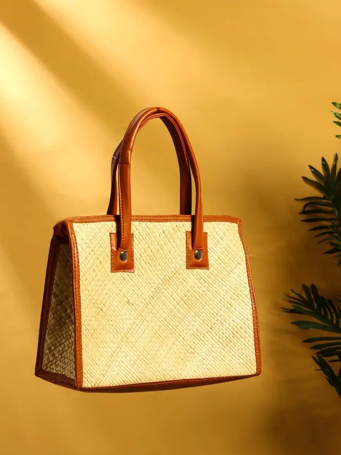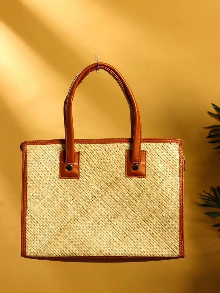 Сумка плетёная на молнии из пандана 35х12х40 см, светло-коричневый