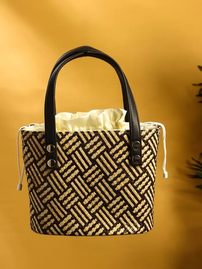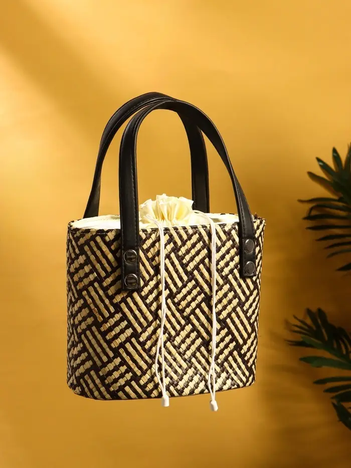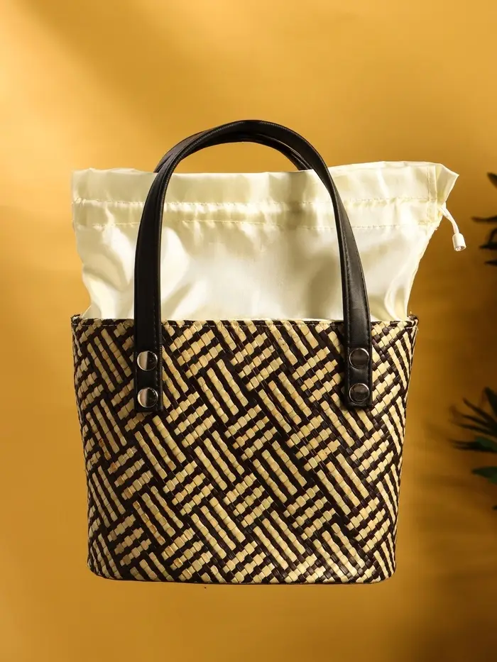 Сумка плетёная из пандана, 22×14×35 см, бежево-коричневая