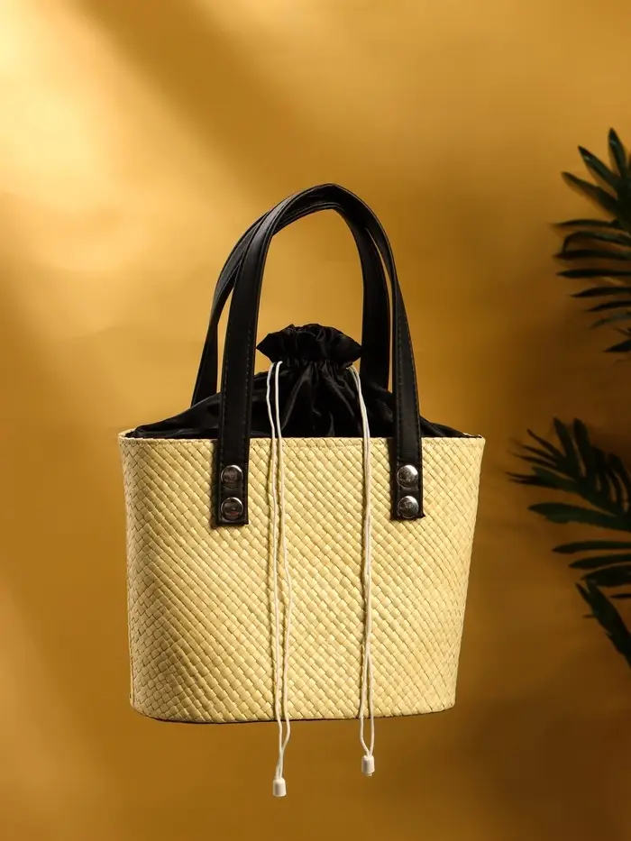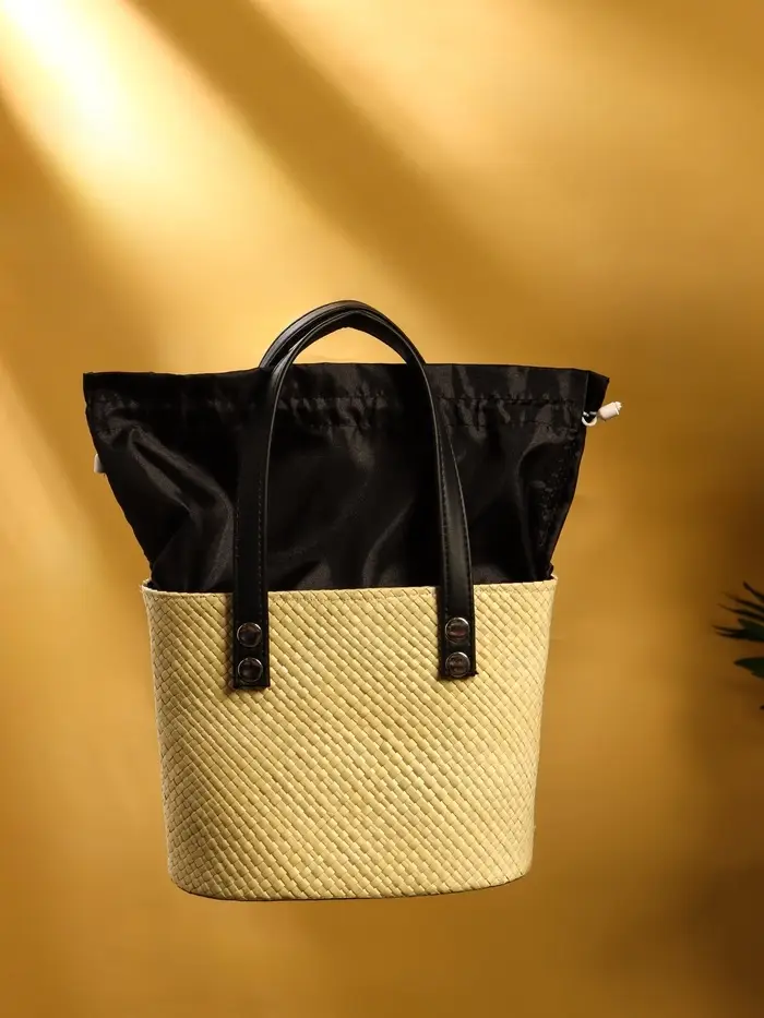 Сумка плетёная из пандана, 23×14×35 см, бежево-чёрная