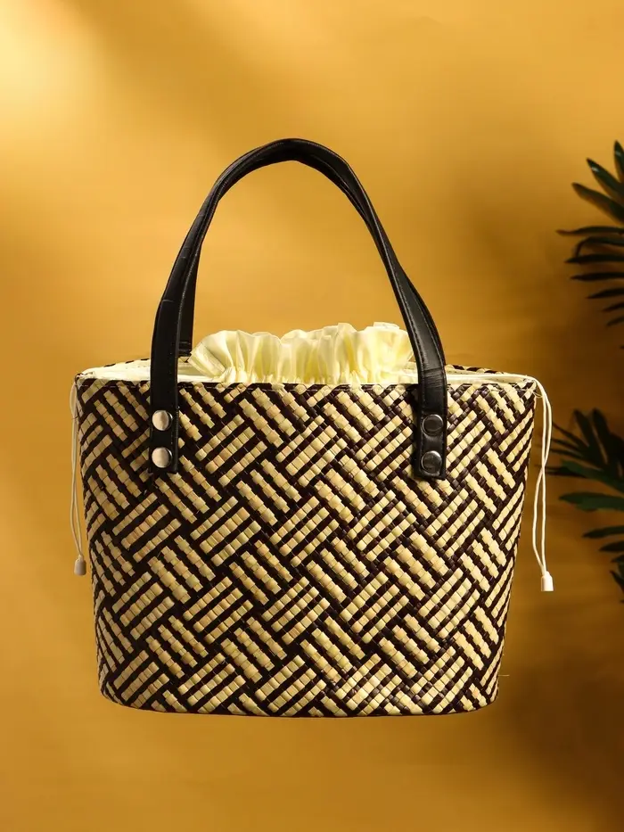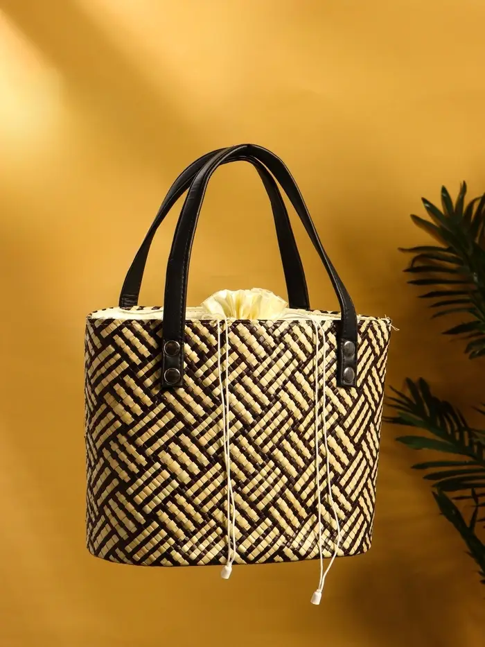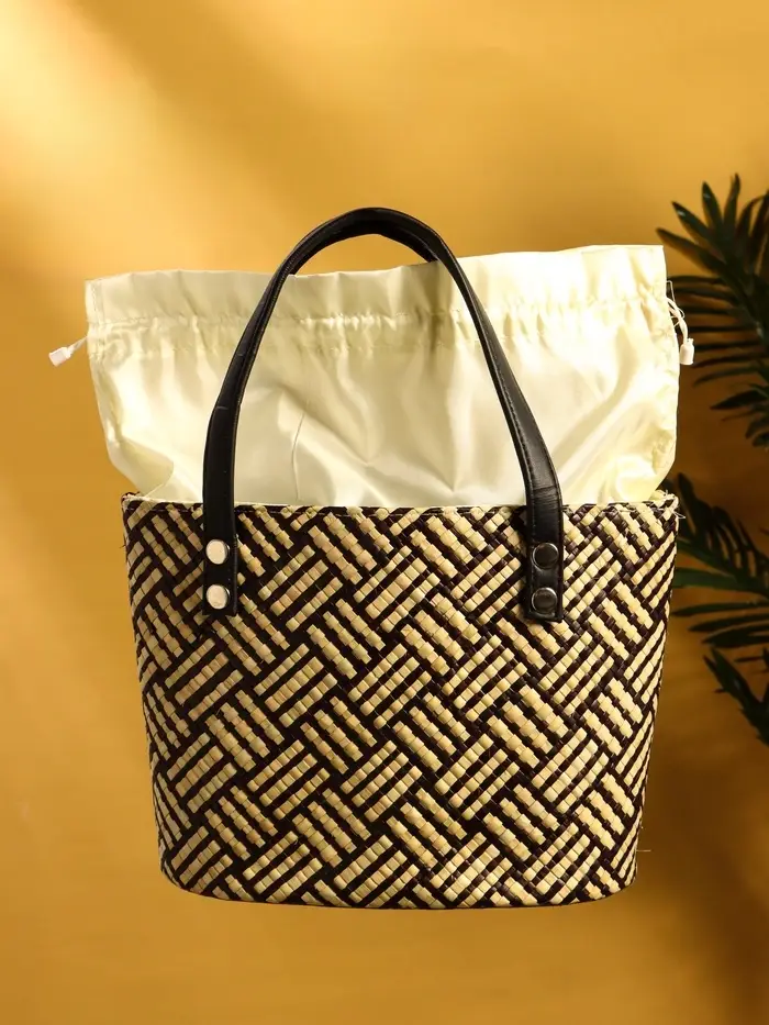 Сумка плетёная из пандана 27х19х42 см, цв. бежево-коричневый