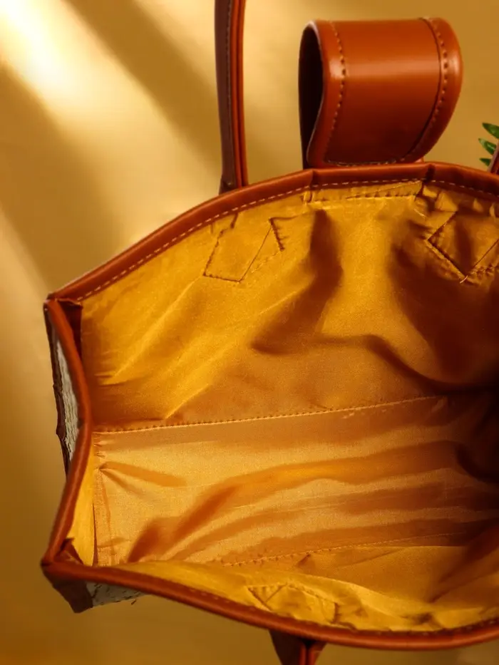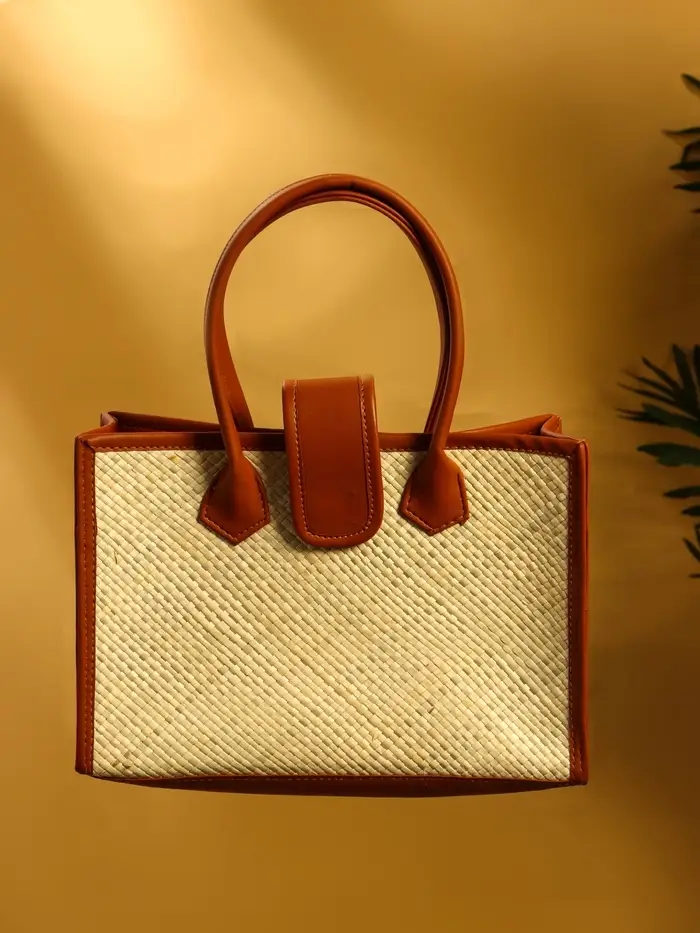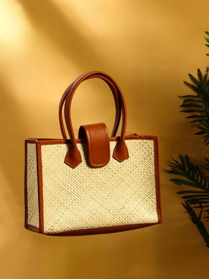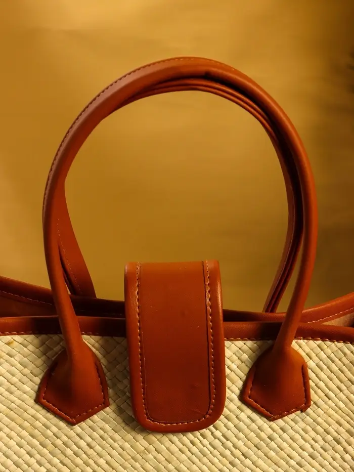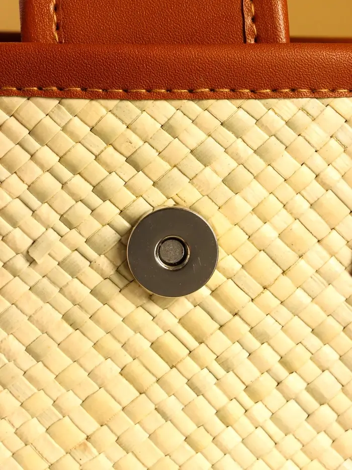 Сумка плетёная на застёжке из пандана 30х10х35 см, бежево-коричневый