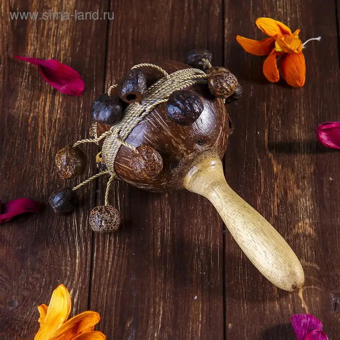 Сувенирный музыкальный инструмент "Маракас с 5 шариками" 10х27х10 см