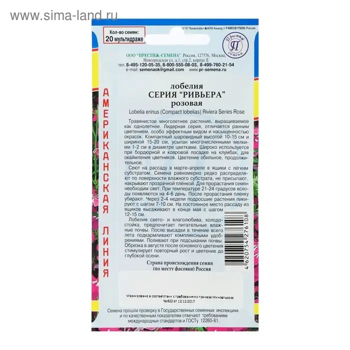 Семена цветов Лобелия "Император Вильям" О, набор 5 шт
