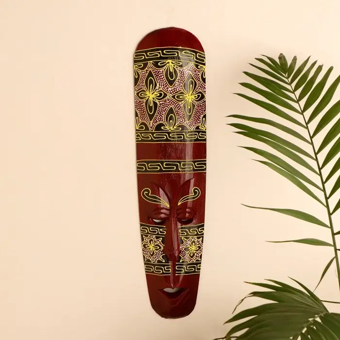 Маска настенная дерево "Абориген коричневый с желтым узором" 3х12х50 см